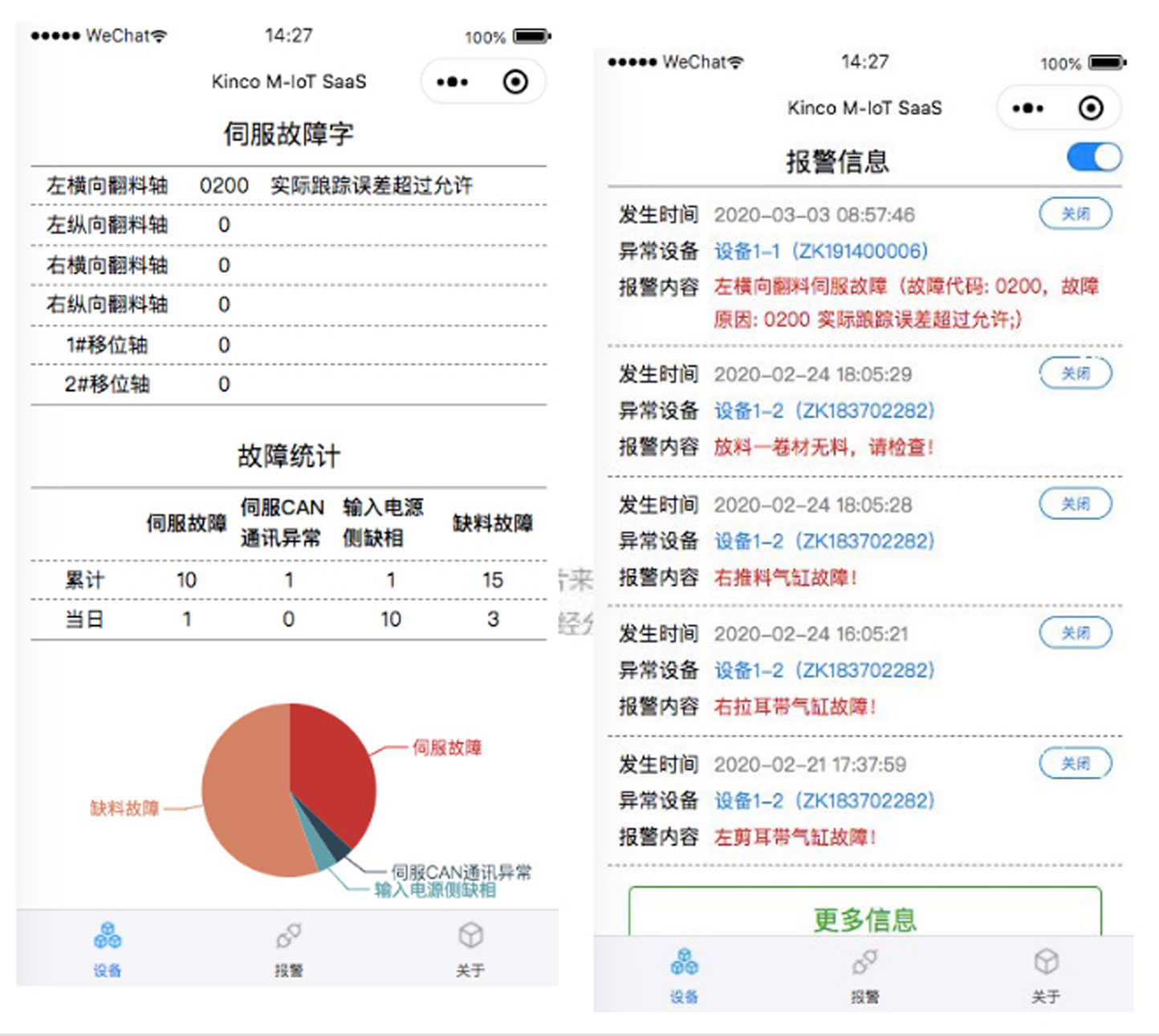 步科口罩機(jī)Plus方案,在CANopen總線伺服驅(qū)動(dòng)產(chǎn)品基礎(chǔ)上,迅速升級(jí)M-IoT物聯(lián)網(wǎng)遠(yuǎn)程運(yùn)維服務(wù),快速完善了設(shè)備報(bào)警和維護(hù)信息,增加了遠(yuǎn)程診斷服務(wù)功能,進(jìn)一步打通了現(xiàn)場(chǎng)、設(shè)備商和部件商的溝通渠道,幫助現(xiàn)場(chǎng)人員快速排查故障。