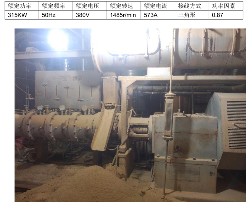 2、 、 改造設(shè)備概述: :客戶要求改造的設(shè)備為膨化機(jī),達(dá)315KW 功率(實(shí)際銘牌數(shù)據(jù)如下表1)。膨化機(jī)工作原理為:利用膨化機(jī)的不等距非標(biāo)準(zhǔn)螺旋系統(tǒng)的擠壓推進(jìn),物料中的氣體被排出,并迅速被物料填充,物料受剪切力作用而產(chǎn)生回流,使機(jī)膛內(nèi)的壓力增大,隨著摞旋與機(jī)膛間的磨擦使物料充分混合、擠壓、加熱、膠合、糊化而產(chǎn)生組織變化,原有的結(jié)構(gòu)受到破壞,同時機(jī)械能通過物料在膛內(nèi)的磨擦作用而轉(zhuǎn)化為熱能,使物料成為具有流動性質(zhì)的膠凝狀態(tài),物料被擠壓到出口時壓力由高壓瞬間變?yōu)槌?,由高溫瞬間變?yōu)槌兀斐伤盅杆俚貜慕M織結(jié)構(gòu)中蒸發(fā)出來,使其內(nèi)部形成無數(shù)微孔結(jié)構(gòu),再通過切割裝置,切割冷卻即膨化成形。