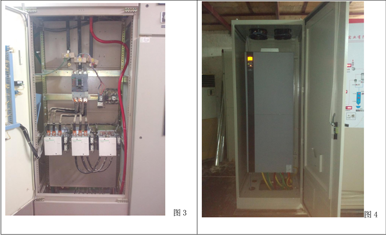 根據(jù)實(shí)際情況及以上的分析,電機(jī)采用丹佛斯 FC302 系列變頻器(額定功率 315KW,額定電流 600A)控制,變頻器前端加裝一個保護(hù)斷路器(額定電流 630A),因生產(chǎn)車間環(huán)境很惡劣,需為變頻器配備電柜(如上圖 4),放置于中央控制室。
