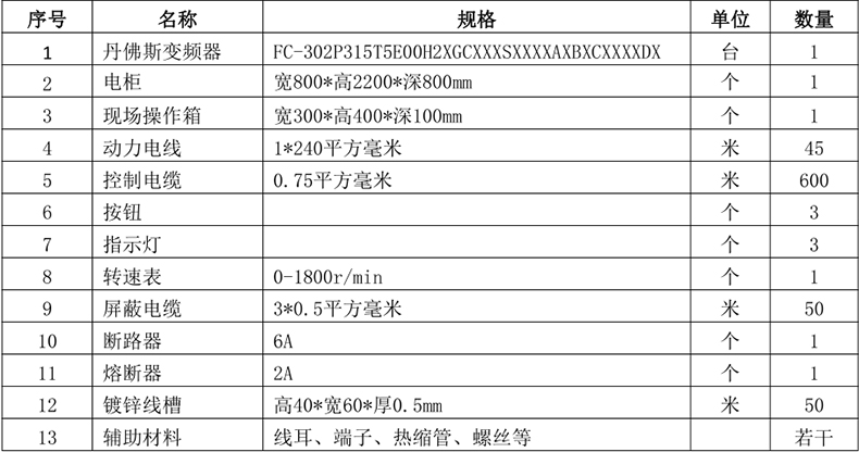 (1) 、電機(jī)改用丹佛斯 FC302 系列變頻器控制(電機(jī)采用三角形接法),實(shí)現(xiàn)軟啟停功能,啟動電流在電機(jī)額定電流以內(nèi),節(jié)約電能;