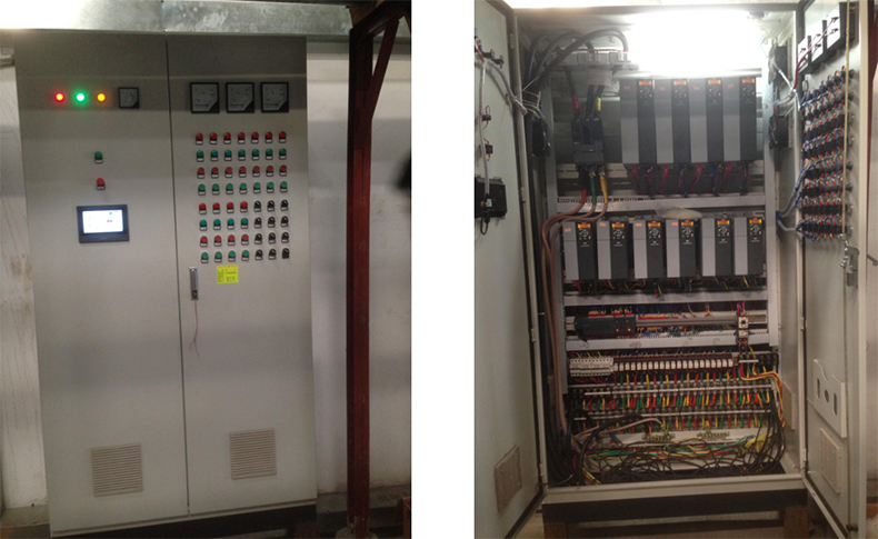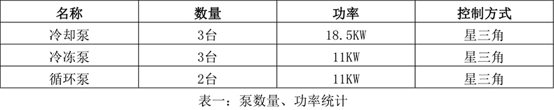 該系統(tǒng)設(shè)計(jì)之初,均沒(méi)有考慮冷卻泵、冷凍泵、循環(huán)泵采用變頻控制(如下表1),而是采用傳統(tǒng)的星三角啟動(dòng)方式(舊電柜見(jiàn)下圖1),根據(jù)對(duì)系統(tǒng)運(yùn)行工藝的觀察,泵總功率110.5KW,電能浪費(fèi)嚴(yán)重,存在較大的節(jié)能空間。