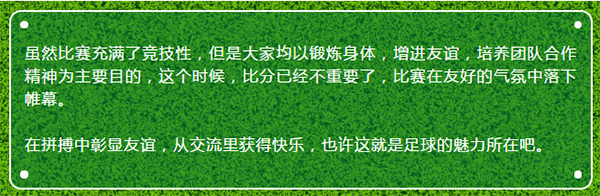 一天的友誼賽下來,大家都摩拳擦掌,信心滿滿。希望在決賽中發(fā)揮實力,比出水平。