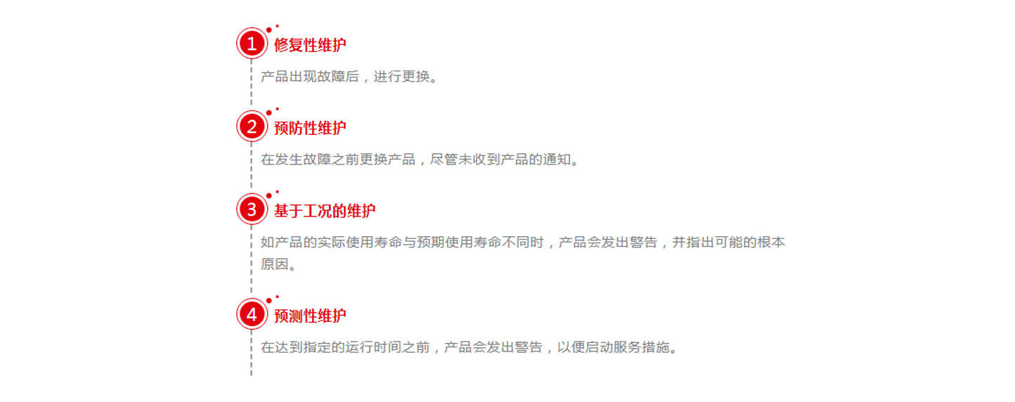 為何需要基于工況的維護?就是要在故障真正發(fā)生之前檢測潛在的故障。而修復性和預防性維護是根據(jù)故障(事件)或時間進行的,是機器設(shè)備在出現(xiàn)故障(修復性)或達到預先設(shè)定的運行時間(預防性)后予以維護。這類型的維護不使用來自實際應用的任何反饋。