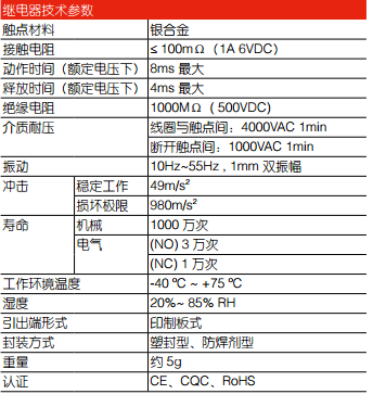 ● 觸點電流高達6A (1CO)