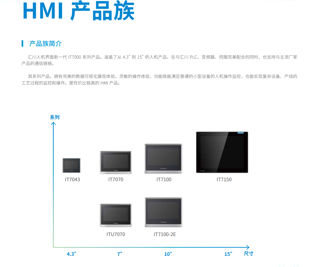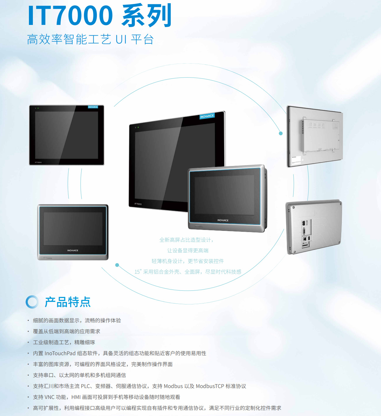 IT7000是匯川基于工控HMI發展趨勢研發的全新一代觸摸屏,在顯示效果上有顯著提升,與傳統HMI相比,IT7000通信更加豐富,功能更加全面,具有更強大的數據處理能力和更快的響應速度。