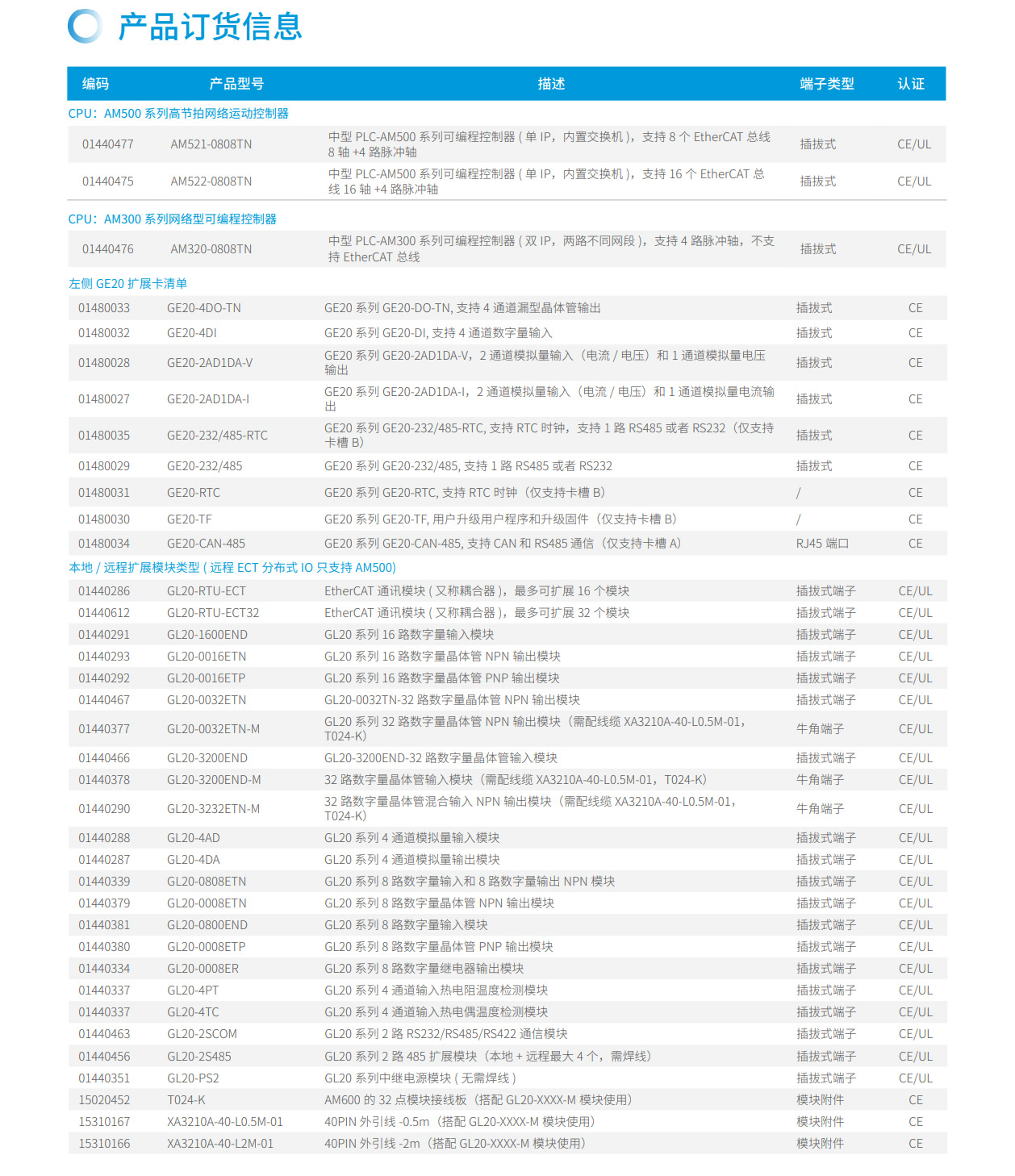 AM500系列是匯川技術(shù)推出的新一代標(biāo)準(zhǔn)型中型PLC,其設(shè)計(jì)開(kāi)發(fā)完全符合PLCopen規(guī)范和IEC-61131-3標(biāo)準(zhǔn),支持ST,LD,SFC,CFC等編程語(yǔ)言,以其小巧的CPU體積、模塊化靈活組合及高節(jié)拍生產(chǎn)特性可適應(yīng)更多的應(yīng)用場(chǎng)景。支持EtherCAT、EtherNet/IP、OPC UA、Modbus TCP(支持兩路同一網(wǎng)段的IP地址)、TCP/IP、RS485(最大可擴(kuò)展至3路)、CAN總線等全球標(biāo)準(zhǔn)的工業(yè)網(wǎng)絡(luò)。主要應(yīng)用于食品飲料、包裝、印刷、硅晶、醫(yī)療、SMT周邊等單機(jī)自動(dòng)化設(shè)備及單機(jī)組合產(chǎn)線,滿足生產(chǎn)效率及控制精度提升場(chǎng)景需求。其開(kāi)發(fā)編程平臺(tái)InoProShop覆蓋從多軸復(fù)雜應(yīng)用、離散單機(jī)應(yīng)用到基本邏輯應(yīng)用,可搭載匯川技術(shù)基于ISA88標(biāo)準(zhǔn)開(kāi)發(fā)的InoQuickPro標(biāo)準(zhǔn)化編程模板框架,實(shí)現(xiàn)規(guī)范的標(biāo)準(zhǔn)化管理開(kāi)發(fā),降低人才培訓(xùn)成本。