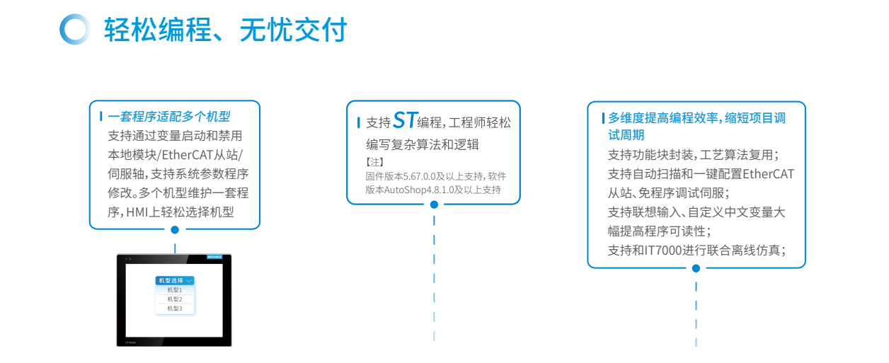 易實現運動控制、過程控制易選型、易擴展易互聯、易組網易編程、模塊化易交付、100%核心器件國產化